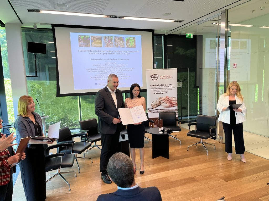 S stani Ministrstva za gospodarstvo, turizem in šport je naš center eden od osmih, ki smo bili na javnem pozivu ministrstva izbrani kot nosilci podpornega okolja rokodelstva. Zato smo slavnostno, iz rok mag. Dejana Židana, prejeli plaketo.