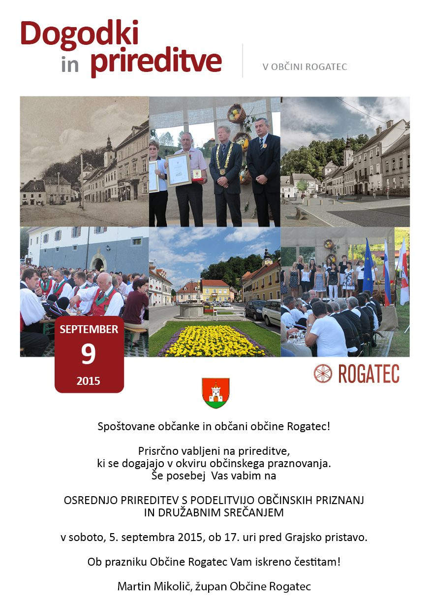 Prisrčno vabljeni na prireditve, ki se dogajajo v okviru občinskega praznovanja. Še posebej vabljeni na OSREDNJO PRIREDITEV S PODELITVIJO OBČINSKIH PRIZNANJ IN DRUŽABNIM SREČANJEM v soboto, 5. septembra 2015, ob 17. uri pred Grajsko pristavo.