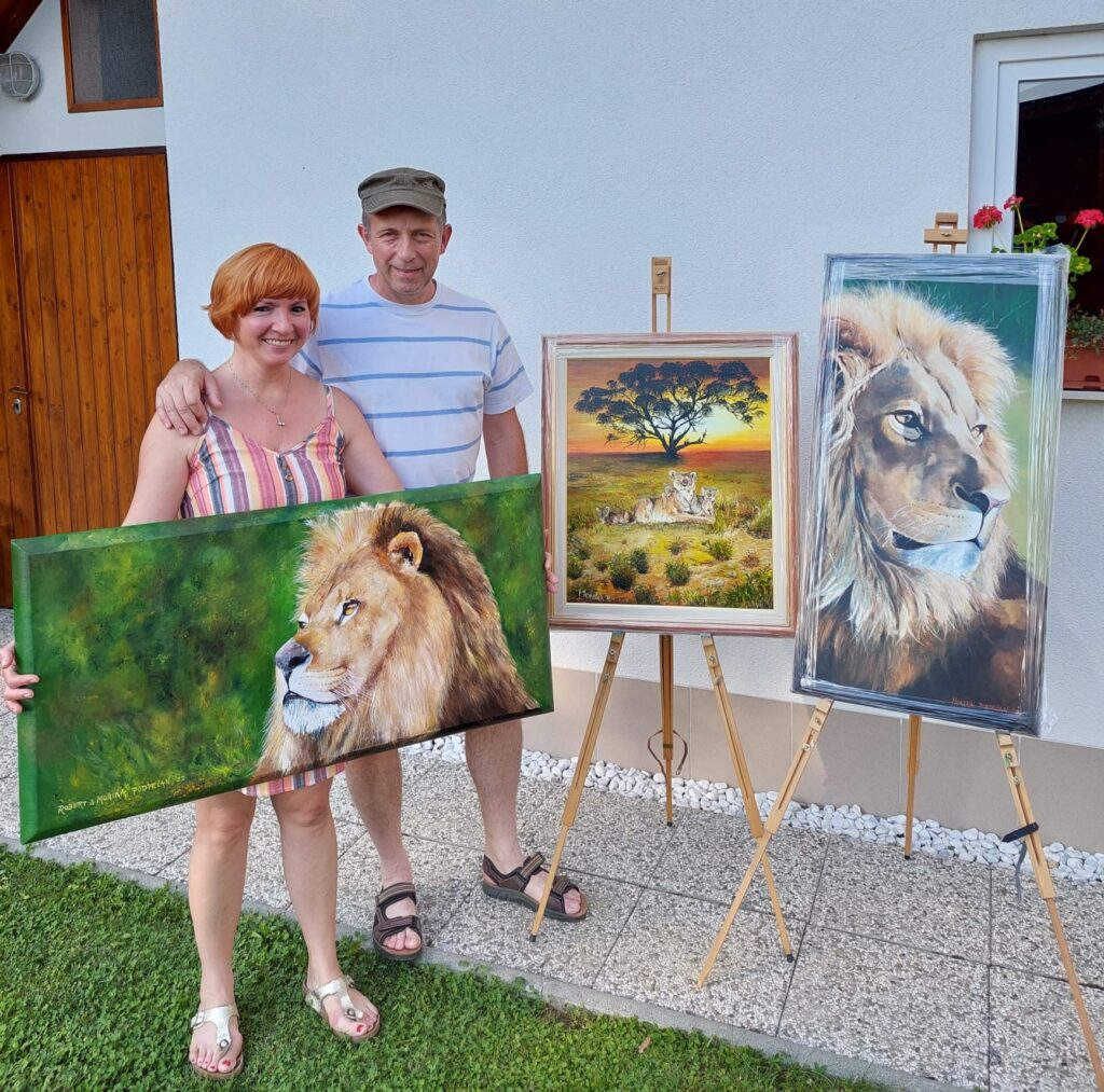 Zakonca Podpečan prihajata iz Šentjurja. Ustvarjata v različnih tehnikah, od svinčnika, pastela, akvarela,