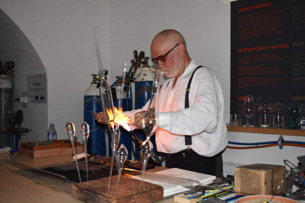 Pihanje stekla in oblikovanje stekla nad odprtim plamenom – mojster steklar Zvone Drobnič