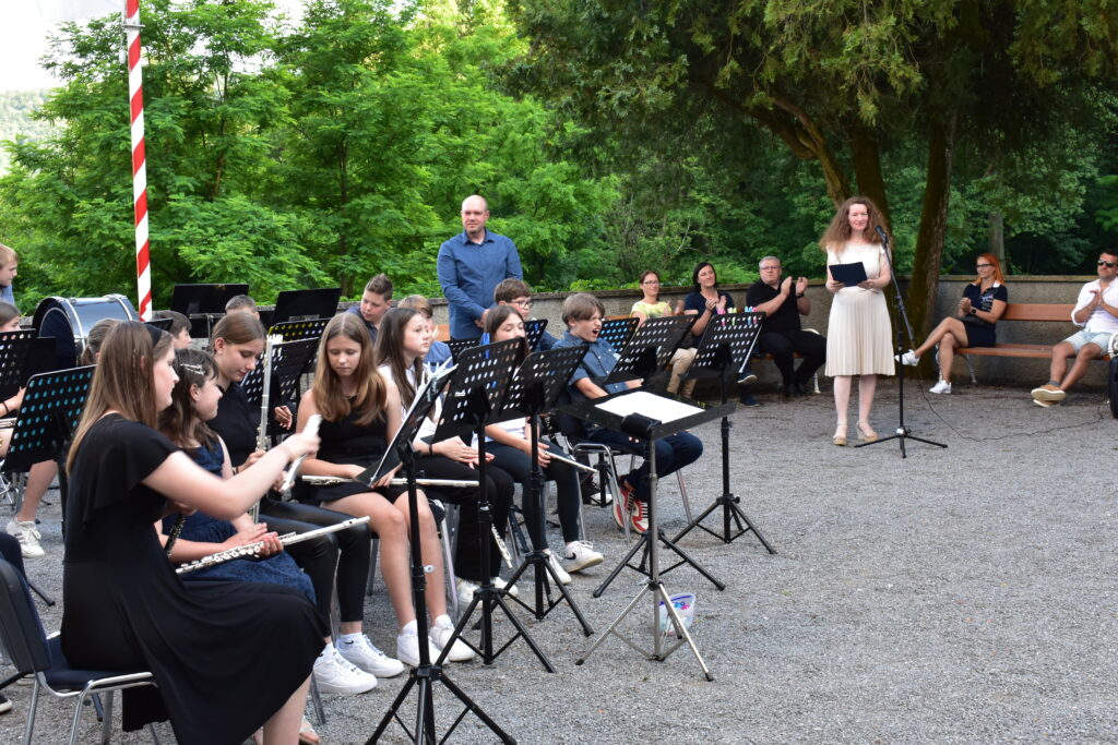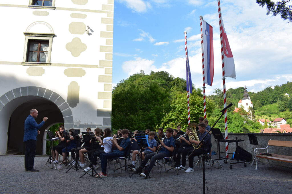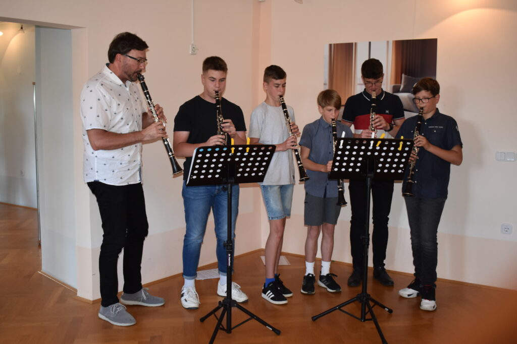 Muziciranje Mladinskega pihalnega orkestra Glasbene šole Rogaška Slatina pod vodstvom Matjaža Klemenca in odprtje razstave, Lepota v steklu, Društva steklarjev Slovenije