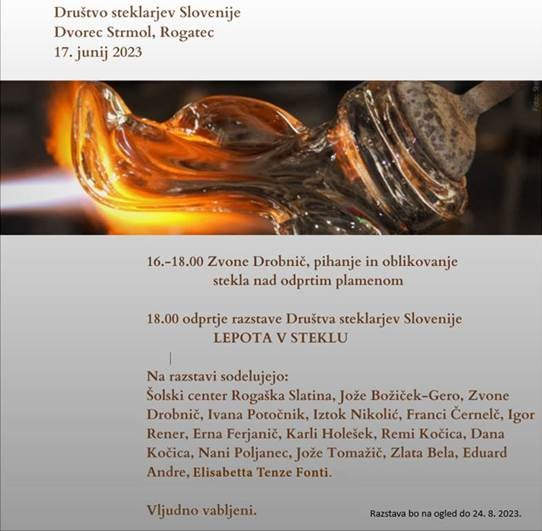 V čast nam je, da že vrsto let na Poletni muzejski noči na Dvorcu Strmol razstavljajo člani Društva steklarjev Slovenije. Zahvala gre gospe Erni Ferjanič, ki skrbno povezuje in tke naše niti.