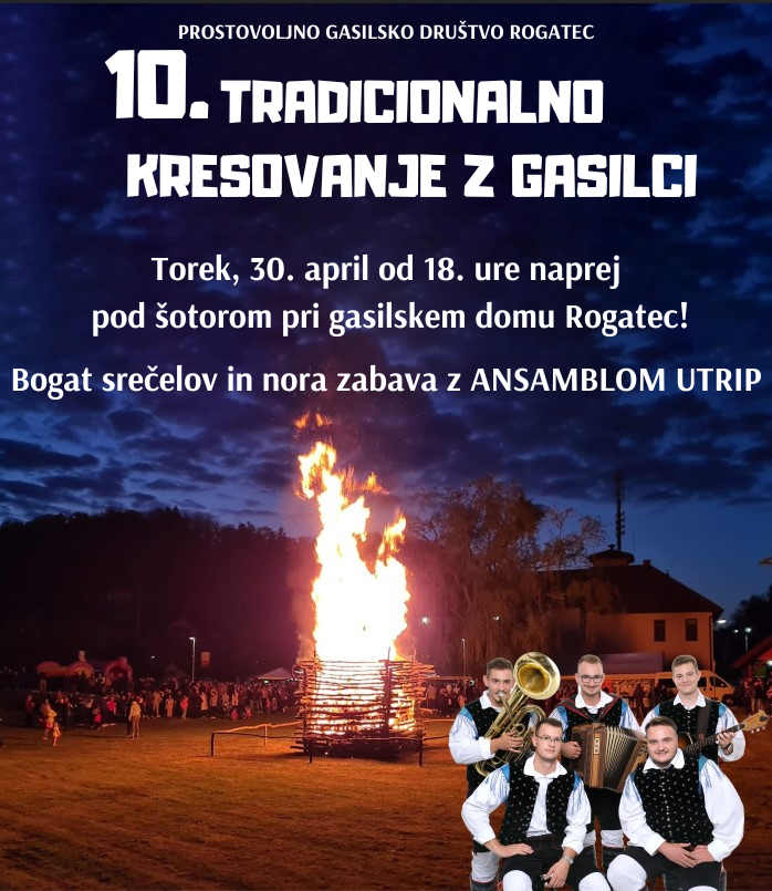 PGD Rogatec organizira 10. tradicionalno kresovanje z gasilci pod šotorom pri Gasilskem domu Rogatec.