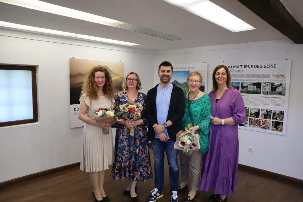 Iz desne: Anita Paun Gadža, vodja Muzeja “Staro selo” Kumrovec, Irena Roškar soavtorica razstave Donačka gora, Jurica Sabol, ravnatelj Muzeja Hrvatskog zagorja, Tatjana Brlek, muzejska svetnica in muzejska pedagoginja v Muzeju “Staro selo” Kumrovec in Nives Brezovnik, organizatorka postavitve razstave iz Zavoda za kulturo, turizem in razvoj Rogatec. Na odprtju razstave je bil prisoten tudi direktor zavoda, Vili Bukšek.