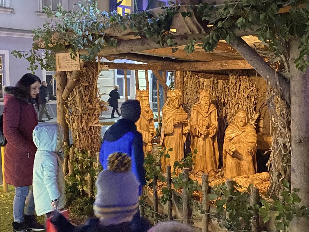 blagoslov in prižig prve svečke na adventnem vencu ter lučk v trgu, pisanje prazničnih voščilnic